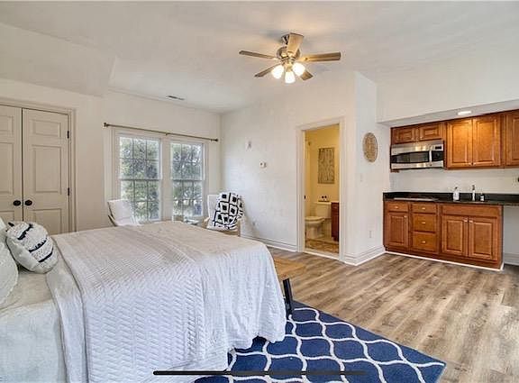 Carriage house (studio apartment) available in the desirable East Beach neighborhood. Less than one block to the Beach and Marina. Walk to restaurants, breweries, farmers market and just a short drive to any of the local military installations. Private entrance, access to clubhouse with pool, fitness room, tennis courts, library, and meeting room. Kitchen with granite countertops, two-burner stove top, microwave/convection oven, new refrigerator, new laminate flooring, ceiling fan, and full size bath.