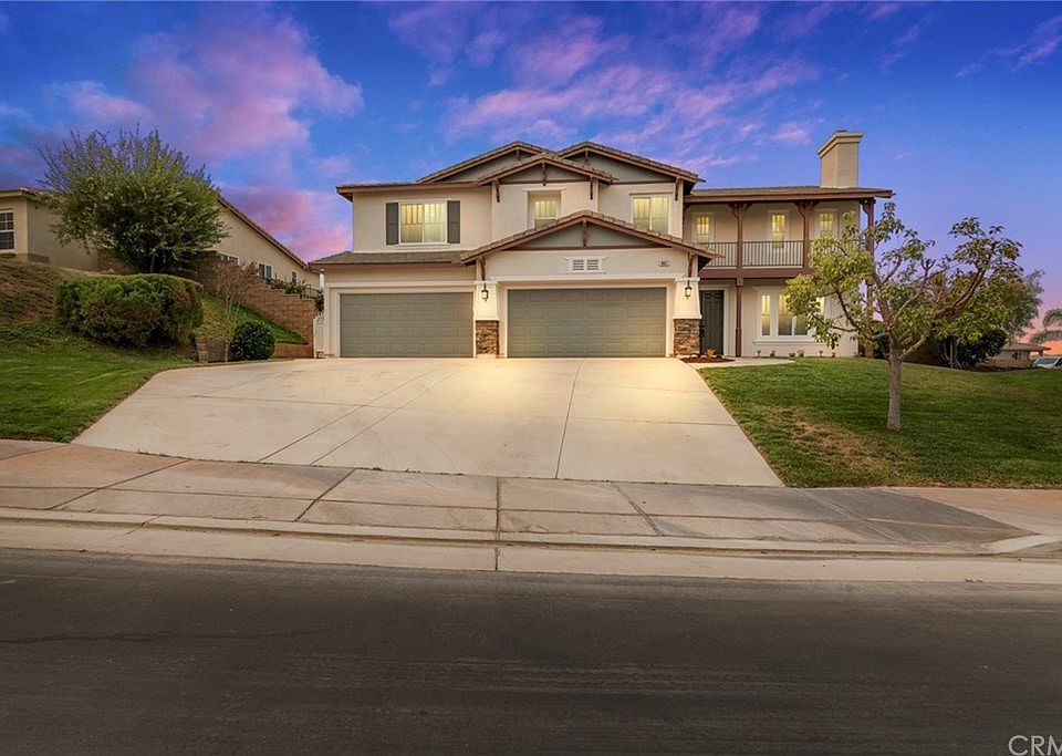 Stunning home located in the premiere gated community, Sunset Ridge. This property is truly turn key and shows like a model home. New paint, inside and out. Dramatic entry with vaulted ceilings and tons of natural light from multiple windows. Also, a lovely staircase which frames the room and a formal living area with a large fireplace and separate formal dining area. Vinyl plank flooring down stairs as well as high grade carpet on the stairs and the second floor. The kitchen has been remodeled with decorative features which include quartz counters, new white cabinetry as well as stainless steel appliances, a large center island and again, tons of natural and over head lighting. The large walk in pantry is also great for storage. The kitchen opens up to the over sized family room with built in cabinetry as well as a 1 of the 3 fireplaces in this home. There is a first floor bedroom with full bathroom and an additional 1/2 bath for guests. A sparkling pool and spa with a large deck area really highlight the beautiful backyard space. The guest house which has its own entrance and patio area is just over 600 sqft. The second floor features 3 additional bedrooms including the sensational primary suite. This space boasts such a large area, huge walk in closet, large tub and separate shower and there is additional space for an office area as well as a fireplace to top it off. Includes a 4- car garage, laundry room and lots of storage... all of this on a huge 21,780 sqft lot!