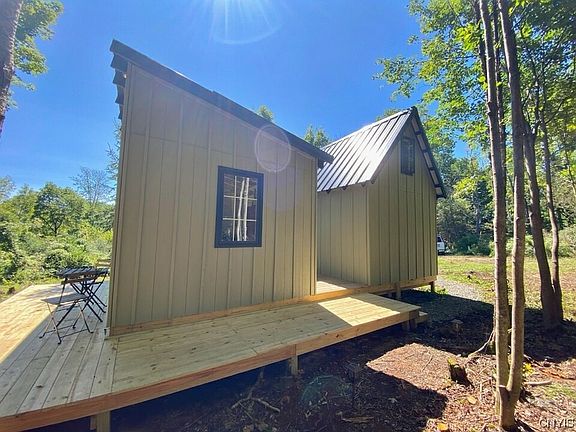Welcome to seclusion and tranquility! If you need an escape, and want a place to just go to relax, or hunt, this is the place for you! This area has prime deer hunting and is within 21 mins (11.5 mil.) to Cortland, and 11 mins. (6.3 mil) to Cincinnatus. Two brand new out buildings are sitting on 10 acres of land, which is surrounded by state land. As you pull into the site, you will see a newly made driveway with large stones and gravel. The buildings were well thought out, while a "hi tec Prodex insulation" was used on the construction. The exterior has rustic looking siding to blend in well with nature. The out buildings can have multiple purposes, to your own liking. All items on the interior are included along with the riding mowing tractor, and a solar powered generator. Oh, and don't forget the outhouse! With a suitable down payment, owner financing is available. Note: there are covenant restrictions for the land. The area quiet and peaceful and is a great place to escape.