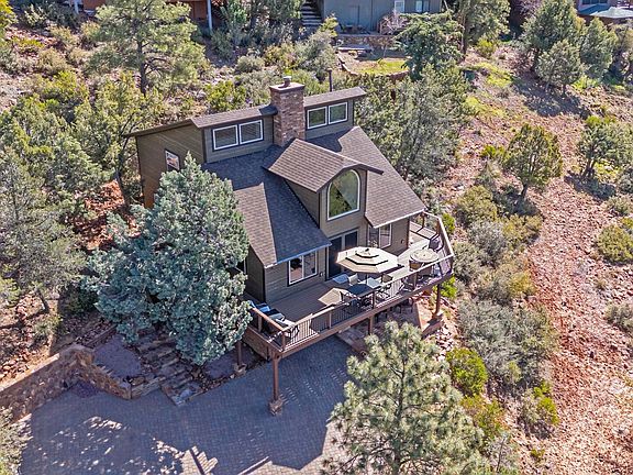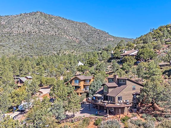 Welcome home to this beautiful custom built 3-bedroom, 4-bathroom retreat boasting breathtaking panoramic views of the serene mountains and picturesque town. Nestled in a tranquil neighborhood, this inviting home offers the perfect blend of comfort and sophistication. Upon entering, you'll be greeted by an open and airy great room concept, ideal for entertaining guests or enjoying cozy nights in with loved ones. The spacious living area seamlessly flows into the dining space and kitchen, creating a warm and inviting atmosphere. The large kitchen features sleek stainless-steel appliances, complemented by a convenient walk-in pantry, ensuring ample storage space for all your culinary needs. Located on the main floor, the master suite offers a peaceful sanctuary with stunning views, providing the perfect retreat at the end of a long day. Two additional generously sized bedrooms provide plenty of space for family members or guests. For added convenience, this home boasts a one car garage, providing secure parking and storage options. For those seeking additional privacy the downstairs can be used as guest quarters with its own entrance and covered patio or it can offer endless possibilities. Step outside to the expansive patio area and soak in the awe-inspiring vistas of the surrounding mountains and the charming town of Pine. Whether you're enjoying your morning coffee or hosting a barbecue with friends, this outdoor oasis is sure to take your breath away. Over the past few years there has been a tremendous number of upgrades. The entire deck has been rebuilt, New AC and Heat Pump, LP Siding, Stonework on the lower patio wall and chimney, Meshtech Security doors, New dual pane windows throughout, New Roof, New French Drain and Landscaping, Remodeled bathroom in the basement plus laminate flooring and lighting. Other upgrades throughout the years consist of new flooring throughout the home, upgraded kitchen countertops, driveway pavers, moss rock walls, lower deck added and exterior stairway. With over $200,000 worth of upgrades already completed, this home is in move-in condition. All it needs is you! The furniture is negotiable outside of escrow.