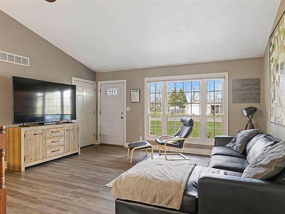 Great looking three bedroom, two bath ranch home with four and half car garage. Interior features many updates new flooring through out, updated kitchen and bathrooms, freshly painted, new light fixtures, new A/C last year and newer windows. Living room and kitchen are open to each other with vaulted ceilings. Master bedroom has en-suite and plenty of closet space. Lower level has a large rec room with a workout room that also could be used as a home office. Located in Hononegah School District with just short of .50 acre lot.
