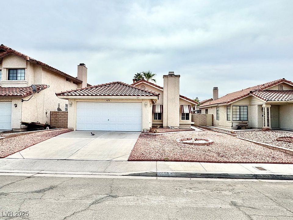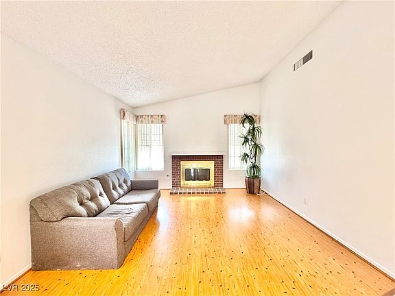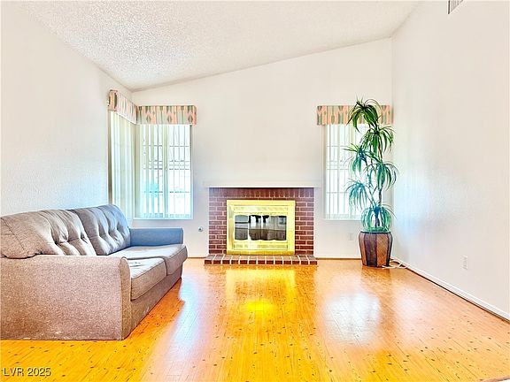 A beautifully maintained single-story home offering 2 bedrooms, 2 bathrooms, and a spacious 2-car garage. Step inside to a generous family room featuring vaulted ceilings and a cozy fireplace, perfect for relaxing evenings or entertaining guests. Situated in a prime location across from Spanish Trail and just minutes from the 215 freeway, you'll enjoy convenient access to top shopping and dining destinations. The front yard is low-maintenance desert landscaping, blending simplicity with Southwestern charm. In the fully finished backyard, unwind beneath the extended covered patio, with a dedicated storage room to keep things tidy and organized. A charming mini bridge and ornamental wishing well add a whimsical touch—like a little fairy tale world. This house installed a new AC system in 2021.
