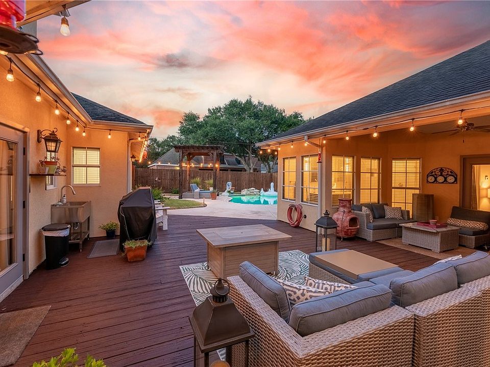 Wide-open skies, Gulf Coast breezes and a Home that's made for true South Texas living. Set across from Oso Creek and sweeping grasslands, this Southside retreat offers the rare blend of peace, privacy and nature. From creekside fishing and bird watching to sandy toes on Padre Island, this Home connects you to the best of South Texas outdoors. Why you'll love it: - Kitchen with professional-grade design, generous counters and ample storage - Bright, open floor plan that connects seamlessly to a courtyard & outdoor grilling area for BBQs under the Texas stars - Two fireplaces in each living area for cozy evenings on those cool nights - Resort-style backyard: sparking pool, in-ground basketball goal and an outdoor shower for rinsing off after a day at the beach - Sandstone walkways and coastal landscaping with custom lighting so you can keep the festivities going after the sun goes down - Smart updates: modern laundry room, refreshed bathrooms and full security system w cameras - Community perks at The Lakes: tennis and basketball courts, lap pool and clubhouse... Whether you're hosting celebrations, cooling off with a sunset swim, or getting your steps in down Oso Parkway, this Home is where comfort, nature and Coastal Living come together... Well cared for, beautifully updated, and surrounded by nature, this Southside retreat is the definition of South Texas living!