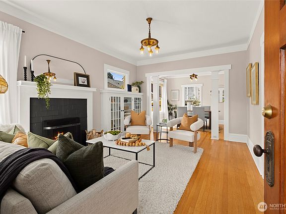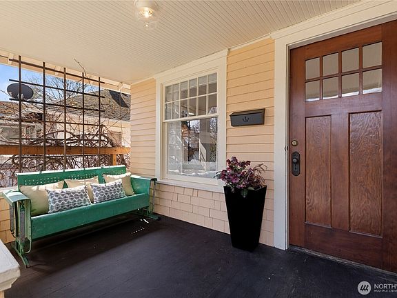 Sweetest home North of Seattle! Move-in ready 2-bdrm Craftsman home on a friendly street. Built in 1915, it offers living & dining rooms, large windows and a cozy fireplace. Enjoy the newly refinished wood floors, trim molding, and coved ceilings. A clawfoot tub, original built-ins & a rocking chair front porch add extra charm. The updated kitchen has newer appliances and lots of light. Established landscaping (Concord grapevine, lilac, wisteria, & Japanese maple) add privacy and color to the porch, front yard and small, flagstone-paved back patio. The large basement awaits your vision. This Wallingford home is a commuter’s dream with easy access to I-5, 520, bus lines & bike paths. This gem combines vintage character, style & convenience!