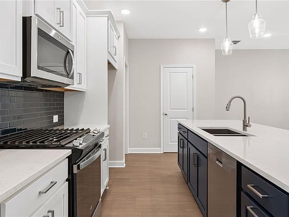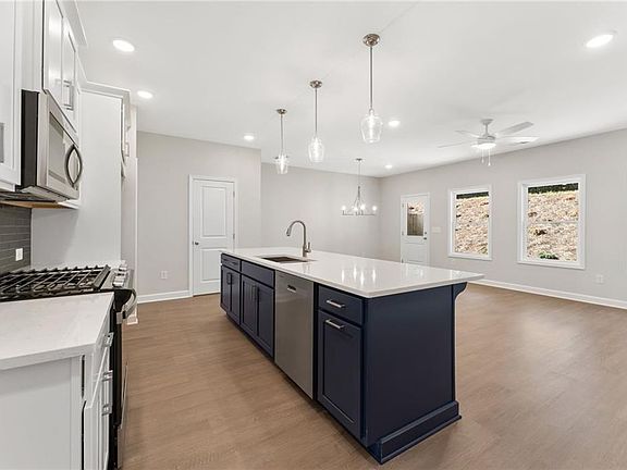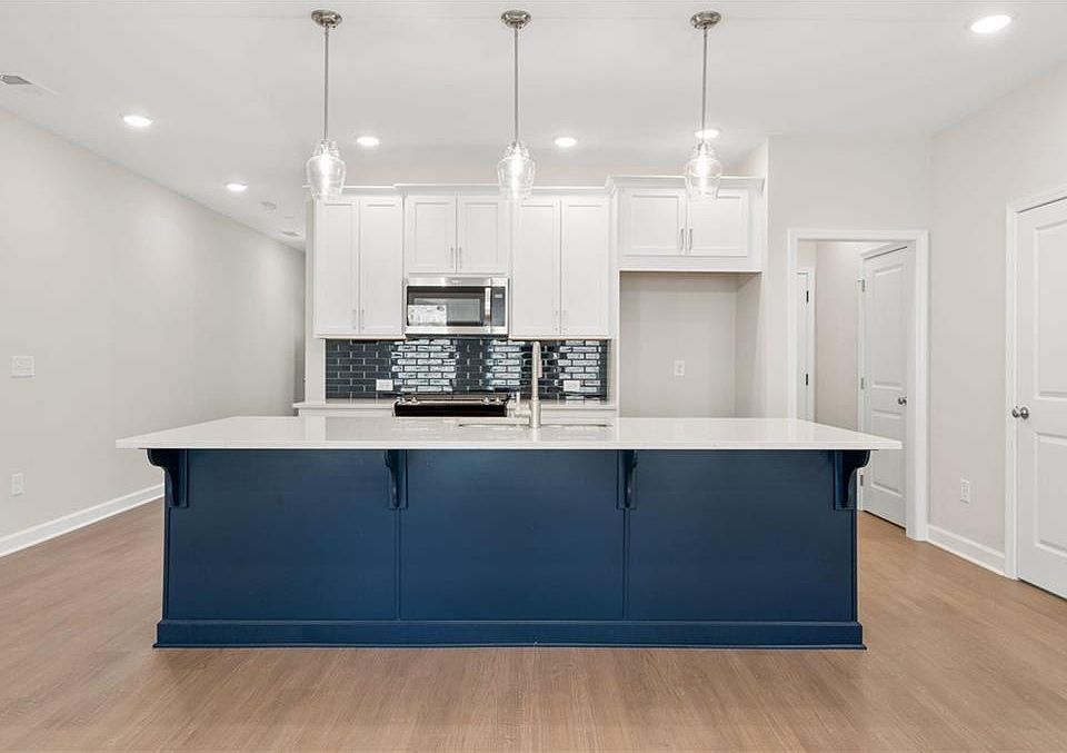 Traton Homes, Bolton elevation J. Ready NOW! We are offering $5,000 towards closing costs, an appliance package with refrigerator, washer & dryer, with our preferred lender are offering up to $10,000 towards closing costs/rate buy down for contracts that close on or before December 30! This beautiful townhome offers an incredible covered and enlarged rear patio, an open layout floor plan that seamlessly connects the kitchen, dining area, and living room. The gourmet kitchen offers a massive island with pendant lighting & seating for four, quartz countertops, stainless steel appliances, and a walk in pantry! The living area provides lots of windows for natural lighting, giving you a perfect place to relax and entertain family or friends! You're dining area is great for gatherings or cozy night in. Walk outside to your extended covered patio great for relaxing, grilling, or enjoying the coming warm days! Your full oak treads lead to your loft area with LVP on the second floor, which is a perfect space for an office, flex space, or sitting area. The oversized primary suite on the interior side of the home, which spans the entire width of the home, can easily accommodate a king size bed, and plenty of furniture! The oversized walk-in closet will impress, and your beautiful bathroom with tile and glass shower, double vanity, and tile floor will be a perfect retreat to freshen up at the end of your day. Amenities include a beautiful pool & cabana, alongside a nature walking trail that spans the length of the community. You'll be nestled near downtown Powder Springs, and just minutes from downtown Hiram! Traton Homes has been voted Best Builder in Cobb for the last five years in a row! Come see why! All applicants must pre-qualify with one of our preferred lenders, regardless of who they choose for their loan. All incentives and price reductions are tied to a preferred lender only. perfect for entertaining for the Holidays.
