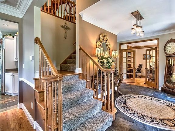 Custom Built home, Award winning Hampton Twp,5 bedrms, 5 baths, beautiful 16x16 modern,heated slate floors through foyer,hall, kitchen & bath, 9 feet ceilings w/ 3 piece crown molding through out.2 story great room w/stone fireplace Kitchen boast Corian counters & island, tile backsplash, stainless appliances,double oven & plenty of white cabinetry,Bright breakfast area surrounded by windows & view of lush level yard. 1st fl office w/ built in book cases & hardwood flrs,huge convenient 2nd fl laundry with cabinets, laundry tub.Spacious Master suite with trey ceiling,walk in closet, organizers,bath with tiled shower,double vanities,linen closet, jet spray tub 3rd floor has bedroom, sitting area &full bath Custom patio &fire pit featuring Versalok Walls w/American Heritage Pavers country stone tables w/ limestone table tops Bronze Gemstone Fence w/1 double & 2 single gates large finished game rm with full bath 4 car heated garage w/ workhoom