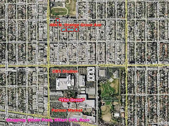 This is near so many places CBS studios, the Grove, Cedar Sinai Hospital, Farmers Market, Writers Guild, "The Grove" is 10 min walk away, Great schools and more Google the map. In a GREAT neighborhood, Please drive by and See for yourself. For general Location mapping - 1 Block east of Fairfax Ave between Melrose and Beverly Blvd...On the corner of Orange Grove Ave and Rosewood Ave. A Corner Apartment with very easy parking for 2 cars.