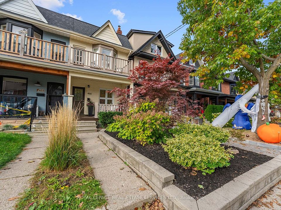 Welcome to 466 Beresford Avenue Set in the heart of Bloor West Village, one of Toronto's most family-friendly neighborhoods, this charming 3-bedroom, 2-bathroom semi-detached home offers the perfect blend of comfort, community, and convenience. Located within the highly sought-after Runnymede Junior & Senior, Humberside Collegiate, and St. Pius X school catchments, this pocket of prime Bloor West is a true gem - where children play freely on tree-lined streets and neighbors gather for countless community events throughout the year. Inside, the open-concept main floor is designed for easy living and entertaining, featuring three generous living, dining, and kitchen areas under soaring 9-foot ceilings. The spacious kitchen, impressive by Bloor West standards, includes ample cabinetry and counter space, with a convenient mudroom at the rear leading to a private fenced backyard. This outdoor oasis includes a gazebo-covered turf area, garden shed, and laneway parking. Upstairs, the sun-filled primary bedroom faces east and features floor-to-ceiling closets, while the two additional bedrooms offer excellent proportions and versatility for children, guests, or a home office. A four-piece family bathroom completes this level. The finished lower level provides flexible space for a movie lounge, gym, or home office, along with a convenient two-piece bathroom. Bloor West Village is one of Toronto's most family-friendly neighbourhoods, known for its vibrant community spirit, walkable streets, and cultural charm. Enjoy European bakeries, cafes, and boutiques, plus nearby High Park for nature and recreation. With top schools, safe streets, and easy TTC and UP Express access, it offers an ideal blend of city living and community warmth. From its generous layout to its unbeatable location and vibrant community spirit, 466 Beresford Avenue checks all the right boxes for West-End family living.