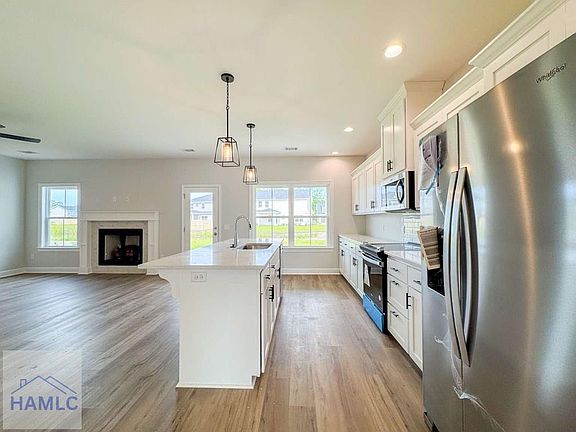 Kohen plan on a corner lot in Alder Grove! Minutes from I-95 in coastal Liberty County! Fall in love with this 5 bedroom, 3 full bath home with loads of gorgeous features including smooth finish ceilings, sod & irrigation in the front & backyards, covered back patio & gas fireplace in the family room! Upon entry is an impressive 2-story foyer with formal dining room adjacent. The kitchen sparkles with quartz counters & tile backsplash. A bedroom & full bath sit just off the family room! Take the stairs with LVP treads up to 3 more bedrooms, a hall bath, laundry room & the primary suite! Find a vaulted ceiling & ceiling fan in the primary bedroom plus a private bath with walk-in closet! The private primary bathroom features tile flooring & tile shower with pan insert, a soaking tub & two vanities! Quartz counters throughout all bathrooms! Estimated completion June 2025.