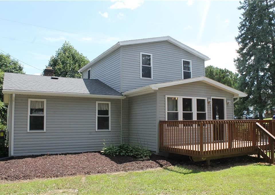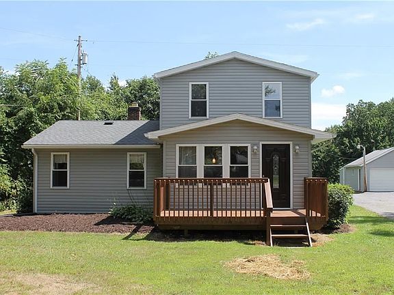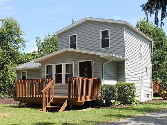two story home in new condition ,first floor master with vaulted ceilings ,his and hers closets ,dual vanities and large window, new kitchen with center island , floor to ceiling extended cabinets ,tile back splash and granite counter tops , new insulation ,drywall ,windows ,doors ,roof , siding, electric heat pump and central air, flooring thru out, hot and cold water tanks ,well pump , front porch 14 x 8 , rear deck 28 x 20 ,shed 10 x 8 ,two car garage 28 x 20 with newer drywall ,siding and garage door, sits back from road with plenty of parking ,private back yard,