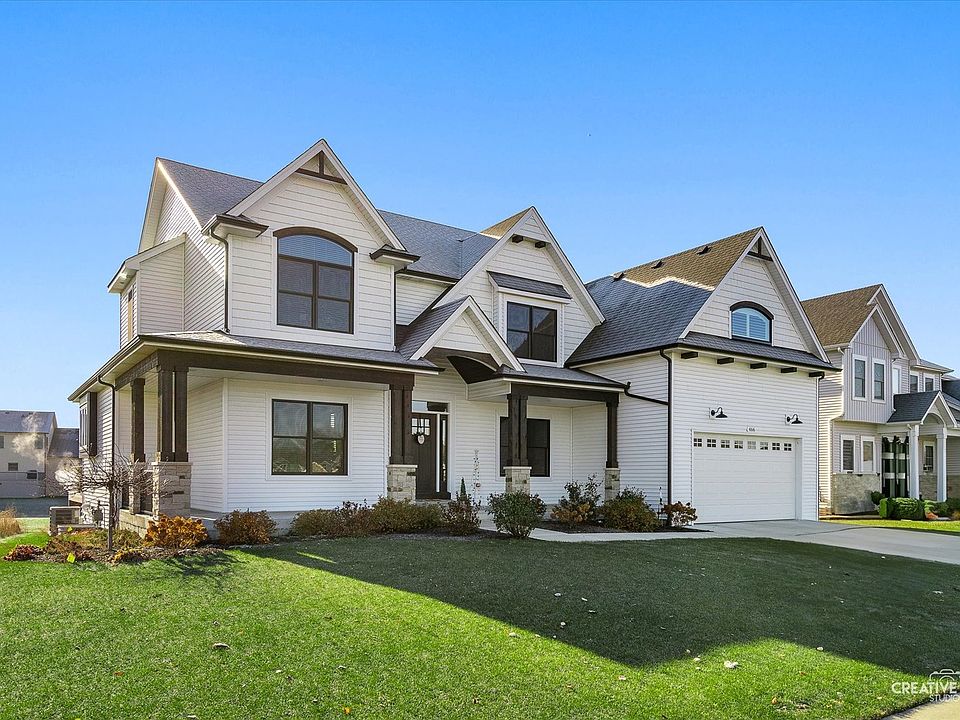 Fantastic opportunity to own a recently built home in Deerpath Trails -No waiting to build! This stunning four-bedroom, three-and-a-half-bathroom home, built just a few years ago, offers modern living with an open floor plan perfect for both relaxation and entertaining. As you step inside, you are greeted by spacious, light- filled rooms that seamlessly flow from one area to the next. The main living area boasts high ceilings, large windows, and sleek finishes that create a bright, airy atmosphere throughout. The gourmet kitchen is a chef's dream, featuring stainless steel appliances, a large island with seating, and ample cabinet space. The adjoining living and dining areas are perfect for hosting family and friends, while a cozy fireplace adds a touch of warmth and charm. Convenient first floor office space. The master suite is a true retreat, offering a private oasis with a luxurious en-suite bathroom complete with a soaking tub, walk-in shower, dual vanities, and a spacious walk-in closet. Three additional well-appointed bedrooms provide ample space for family or guests, with two additional full bathrooms offering modern fixtures and finishes. A convenient half bath is located on the main level for guests. Outside, the backyard provides a perfect space for outdoor gatherings with a fantastic deck. Located in a desirable neighborhood with easy access to local amenities, schools and parks, this home blends contemporary style with comfort, making it an ideal choice for modern living.