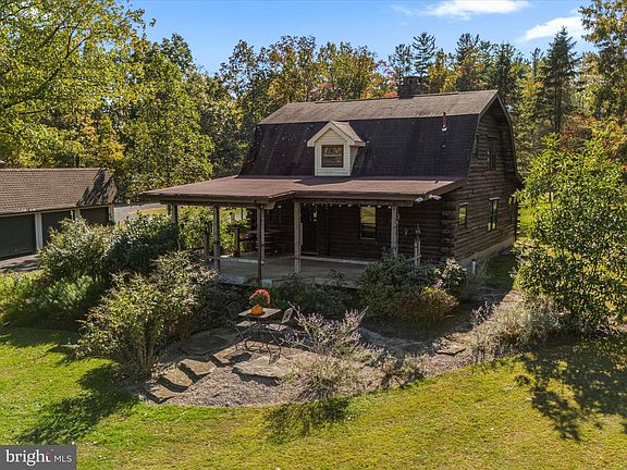 Welcome to your private outdoor oasis in the heart of Haycock Township! Located less than 1 mile from Lake Nockamixon State Park, this charming log cabin is perfectly situated on 12.4 secluded acres featuring a pond, fenced pastures, nature trails and multiple outbuildings. Ideal for outdoor enthusiasts, equestrians, animal lovers, hobbyists, car collectors or contractors, as well those who seek privacy, space, versatility and tranquility. Located on a lovely country road, you will arrive at the gated entrance, flanked by European Hornbeam trees that invite you down a treelined driveway with multi-stemmed heritage Riverbirch trees that create an elegant Allee. Along the drive, you will pass fenced pastures, suitable for horses or small livestock. This country compound is tucked away 550 feet back from the road and provides peaceful and park-like grounds and a variety of outbuildings. Enter the charming and inviting log home into a wonderful vestibule area, great for a sitting room or home office. The updated eat-in kitchen includes granite countertops and bar seating with pendant lighting. A door from the kitchen leads to an expansive, covered deck that is a wonderful place for entertaining and relaxing as you soak up the magical views of the stunning grounds with serene pond views! Enjoy a fieldstone living patio planted with perennial low growing plants to provide texture and color, designed and crafted by Jerry Fritz Garden Design in Ottsville. There is a 7-acre perimeter fence that encompasses the expansive, open area behind the house with the pond with gates to access cleared paths for walking or riding. The living room boasts a handsome stone, propane fireplace. The main level also includes a powder room for guests. Head up the solid wood staircase with a brand-new oak and metal handrail, to the upper-level which includes 2 bedrooms and an updated full bathroom and storage. The lower, walk-out level includes a bonus room, perfect for a home office, gym or sitting room. An abundance of storage and laundry room. The outbuildings include a fantastic Pole Barn 60’ L x 40’ W x 16’ eaves with 14’ x 14’ doors, concrete floors, water, heat and 60 amp electric. Barn #1: Main Horse Barn w/ gutters & snow stops. 34' L x 12' W and 2 STALLS 12'x12', Tack Room 10'x12' with 10'.5" overhang & attached storage shed 10'x10'. Barn #2 w/ gutters: 10'W x 28'L, 2 Stalls 12'X10' with 4' x 10' tack room. HAY SHED Behind Barn 10' x 14'. Animal Shed #1 10'.5 x 10' w/ 6' Overhang. Animal Shed #2 10'x12' w/ 24" overhang. Detached 3-car garage 24’ x 38’ with a 23’ overhang/carport that provides additional covered parking and workspace. An additional 1-car detached garage 12'x26' w/ Shelving behind the pole barn. Vertical carport 12’ x 31’ x 12’. There is a dry lot/riding area with stone dust. This is a true nature lover’s paradise. Peaceful, private and surrounded by natural beauty, yet minutes from convenience. Walk or bike to Nockamixon State Park, which offers 5,283 acres of recreation including boating, fishing, hiking, and biking. The Bucks County Horse Park is just 15 minutes away. Enjoy grocery shopping at the wonderful Kimberton Whole Foods, just 8 minutes away. Treat yourself to ice cream at Oh Wow Cow! Conveniently located close in proximity to CVS, Wine & Spirits store and gas station. Enjoy nearby towns such as Perkasie, Sellersville, Pipersville, Plumsteadville, and Doylestown, along with charming river towns like Frenchtown, Point Pleasant, and Lumberville. An exceptional location offering the best of both worlds with seclusion and serenity, yet easy access to Routes 313 and 611, shopping, dining, wineries, golf, and entertainment. Just 15 miles to Doylestown and Bethlehem, 40 miles to Princeton, 50 miles to Philadelphia, and 80 miles to New York City. Experience the perfect blend of natural beauty, privacy, and convenience. This property is a rare find in Bucks County!