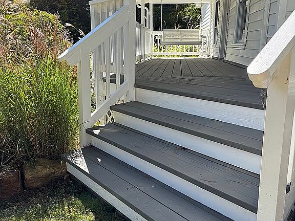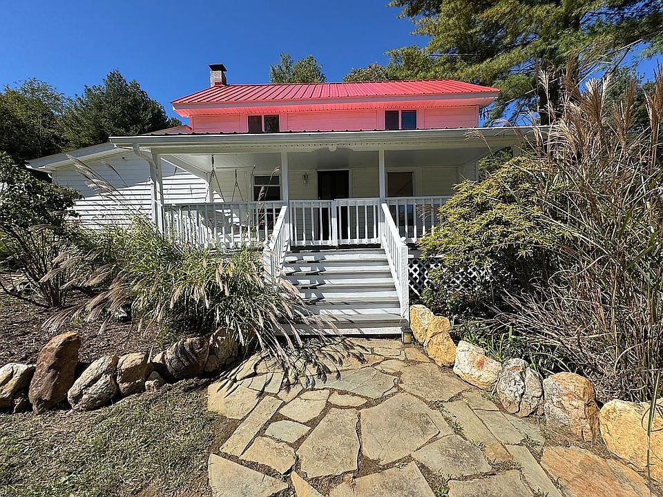 Open floor plan; custom crown molding and beadboard in the living room and the original handhewn plank walls and ceiling in the upstairs; a large porch with new swing. Electric fireplace, new chimney (ready for a wood stove or vented gas logs if desired). Updated electrical, plumbing, roof, insulation and foundation. Whole house water filtration system. Fresh paint throughout!