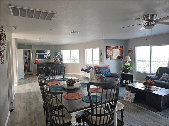 What a VIEW-Investor Opportunity knocks on this single family home perched high on the hill. Has upgraded kitchen and counters- fireplace in Living room open floorplan on top level. Primary bedroom and bath. and a second bedroom upstairs and bathroom. Possible to put another bedroom on upper level. Lower level can be accessed from driveway via a doorway, or from upper level via a spiral staircase. Rear deck needs work- needs new roof as some has blown off and some interior water damage including ceiling and laminate flooring. Has Central Heat and Air. Great potential to turn this into a diamond- Sold as is cash or Hard money loans only. Buyers and agents to verify all square footage, rooms counts. Previous garage was enclosed sometime ago by a prior owner and believed not included in sq footage.