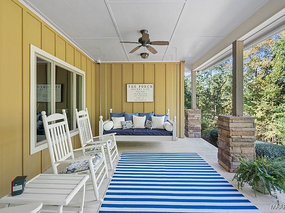 Nestled in the sought-after Jasmine Hill area of Wetumpka, this one-owner, custom-built home feels like your own private mountain retreat. Thoughtfully designed and beautifully maintained, it offers the perfect blend of privacy, space, and timeless craftsmanship. The inviting front porch welcomes you with peaceful ridge views and a relaxing sitting area to enjoy any time of day or night. Inside, the great room centers around a striking corner fireplace with a rock surround, creating a cozy focal point for gatherings. The floor plan flows effortlessly with the owner’s suite privately located apart from the other main-level bedrooms. The spacious kitchen is a true showpiece—featuring a large work island, granite-covered cabinetry, stainless appliances, and an oversized dining area that easily accommodates a large table. A formal dining room and flexible spaces—including a music room or office, craft room, and built-in office nook—offer versatility for work or hobbies. The owner’s suite is a peaceful escape with a sun-filled bathroom that includes an air-jetted tub, separate vanities and closets, and a fully tiled walk-in shower. A bonus flex space off the suite provides room for a home office, workout area, or private sitting space. Two additional bedrooms downstairs share a Jack-and-Jill bath, while upstairs features a spacious game room with mountain-house charm, another bedroom and full bath, plus a kitchenette—perfect for guests or a private retreat. Storage abounds with an oversized laundry room lined with floor-to-ceiling cabinetry and a walk-out attic that’s spray-foamed and temperature controlled. The exterior blends low-maintenance Hardi Plank with rock accents for natural appeal plus high efficiency Andersen casement windows to go with the efficient spray foam attic and walls. The property has a separate wired, heated, and cooled 27x30 workshop just down the drive. Tour this property soon and find your own mountain-inspired escape just minutes from town.