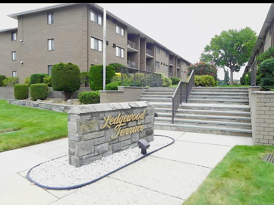 THIS CONDO UNIT IS LOCATED IN THE VERY DESIRABLE LEDGEWOOD TERRACE. THE UNIT FEATURES A VERY SPACIOUS LIVING ROOM/DINING AREA WITH SLIDING DOORS TO THE BALCONY FACING THE COURTYARD GARDEN. THE BEDROOM IS SPACIOUS AND CAN FIT A KING-SIZE BED ALONG WITH AMPLE CLOSET SPACE. THIS IS FOLLOWED BY A KITCHEN AND A FULL BATH. LAUNDRY IS LOCATED IN THE BUILDING. BESIDES THE BEAUTIFUL COURTYARD, THERE IS A LARGE OUTDOOR POOL WITH LOUNGE CHAIRS, SECURITY CAMERAS, AND PLENTY OF PARKING SPACES. OTHER FEATURES OF THE UNIT ARE HARDWOOD FLOORS THROUGHOUT, WITH BRAND-NEW HARDWOOD FLOORS IN THE BEDROOM. ALL THE ROOMS ARE NEWLY PAINTED, 1 CAR IS INCLUDED IN THE RENT, GRANITE COUNTER TOPS, AND MORE. CLOSE TO SHOPPING, RESTAURANTS, MAJOR HIGHWAY, NYC TRANSPORTATION, AND MORE.