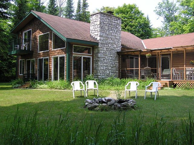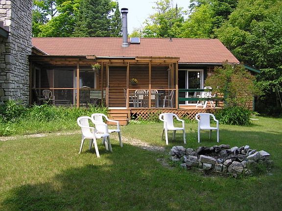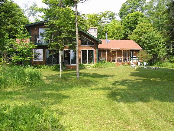 This shore home features views of Detroit Harbor and Detroit Island. There is half log interior and exterior with 2 x 6 insulated walls in between. The screened in porch offers an area to take in the quiet surroundings of your island getaway. There are two fireplaces, both wood burning for cozy, relaxing nights. Each of the three bedrooms features attached full bathrooms and off the kitchen is a common half bath for guests. This home must be seen to absorb all the special features and amenities. The outbuilding is a canopy structure for wood storage.