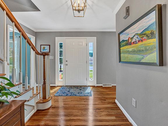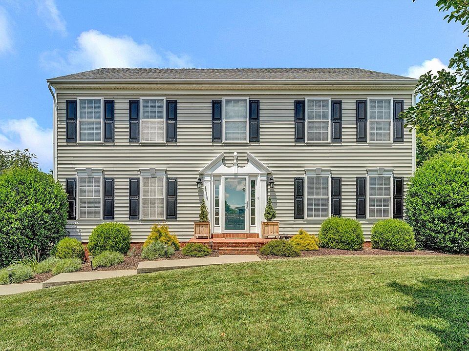 Located in the Edgemont community of Vinton, this colonial style home has been tastefully updated to create a haven that seamlessly blends comfort and convenience. Oak hardwood floors gleam throughout the main level. The kitchen is fully equipped, featuring quartz countertops, soft close drawers, and walk-in pantry. The family room is particularly cozy, featuring custom built-in bookshelves and floor-to-ceiling stone cladding surrounding the fireplace. The screened in porch is the ideal place to gather and enjoy nature's ambience. The primary bedroom is generous, with a walk-in closet and ensuite bathroom with a double vanity, soaking tub, and shower. Laundry is made easy, located on the same level as the primary and other three bedrooms. The lower level was recently finished, creating another multi-use living space with storage, access to the garage and covered patio, which can be used recreationally or as another covered parking space. The exterior features mature landscaping, a storage shed and a recently sealed paved driveway