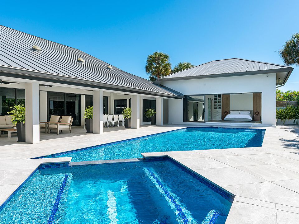 Step into modern bliss with this newly renovated, one-story Delaire Country Club masterpiece, set on a prime golf course lot. Spanning over 5,000 sq ft, this 5-bedroom retreat boasts a cutting-edge theater with a 120'' screen and 8 plush recliners, plus a custom office with sweeping views. Walls of impact glass bathe the home in light, showcasing stunning vistas. The backyard oasis features a heated pool, spa, and summer kitchen--ideal for lively gatherings or tranquil escapes. Designed for security, it offers a sleek metal roof, hurricane windows, and a whole-home generator. From the chef's kitchen to the expansive covered patio, sophistication shines. Act now--call today to claim this modern haven! Delaire Country Club is not just a residence, but a private boutique country club, where 324 custom homes surround a 27-hole championship golf course that requires no tee time. The clubhouse itself is a work of art, featuring a state-of-the-art 16,000 sq ft fitness center, outstanding culinary cuisine, a resort-style pool area, 4 brand new pickle ball courts and 8 Har-Tru tennis courts. Enjoy the generous extended family policy that Delaire offers, ensuring that you and your loved ones can fully embrace the country club lifestyle.