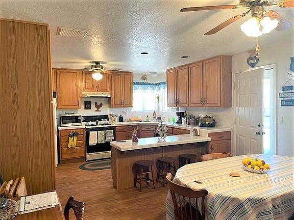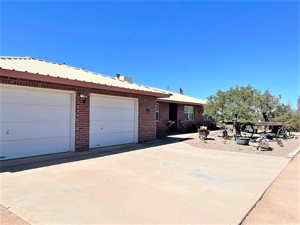Very unique property south of town ! 3 bedroom 2 bath brick home. Metal roof. Nice open floor plan. Wood burning stove in living room. Has 2 car attached garage. Also heated and cooled. Plus a carport to side. Also has storage shed. Is approximately 2.5 acres fenced. Nice sized covered patio. Lots of storage throughout home. PLUS you have your own OLD WEST TOWN ! ( Saloon, Black smith, post office, cafe, Fake old mine, couple old adobe buildings.. to list a few) Some buildings rough shape. But were built with old rough lumber and look original in style ! Have to come see it!