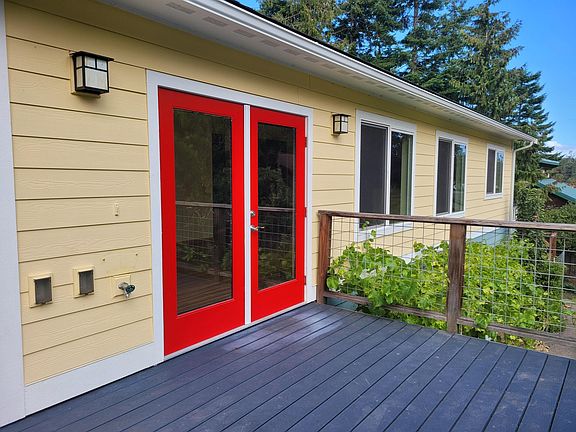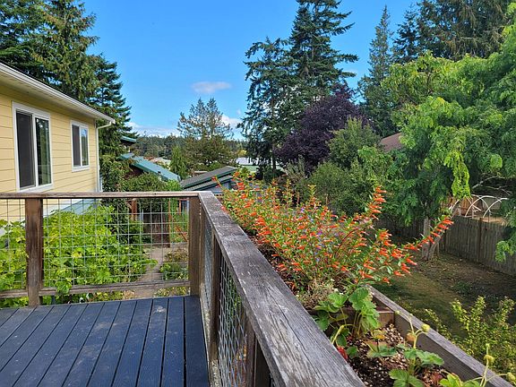 Peaceful two bedroom surrounded by gardens, with a nice front deck to enjoy. Single car garage and two parking spaces. Open and spacious with tall ceiling and nice floors. Open kitchen design allows views into living and dining area. Midi split for heat with additional propane fireplace. Large Jack and Jill bathroom with deep soaking tub. Nice built in bookshelves off living room. Shared laundry room on first floor with stackable washer/dryer and folding table. Close to Fairgrounds and within walking distance to Fort Worden and North Beach.
