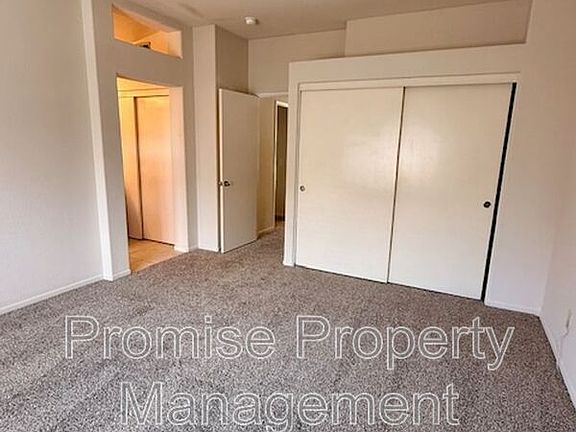Available now, this 2 story town home is gorgeous and will not last. It has central AC, washer/dryer hookups upstairs, 2 car garage, eat in kitchen, back patio and small yard, all appliances including refrigerator, brand new carpeting and paint, and lots of room to grow and entertain. Living Room has vaulted ceilings and gas fireplace. Upgraded blinds throughout home make for easy cleaning. Amenities: community pool, Gated Community, Community Park