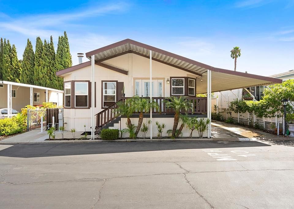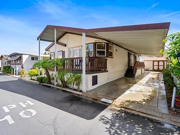 Wake up to natural light pouring through skylights, sip your morning coffee under vaulted ceilings, and enjoy the breeze you're just minutes from the beach. This spacious, sun-soaked manufactured home is tucked inside a quiet, gated, all-age community with rare rent control just $520/month. Inside, you’ll find an open floor plan perfect for relaxing or entertaining, a cozy fireplace for cool evenings, ceiling fans throughout, and privacy hedges that create your own peaceful retreat. Right across from the clubhouse and pool, you're steps from connection or solitude, whenever you need it. There's room for 3 vehicles in your private carport, plus easy access to local shopping, major freeways, and the coastline. Coastal living without the coastal price. Convenience, community, and comfort all in one. Espanol: Despierta con la luz natural entrando por los tragaluces, toma tu café bajo techos altos y disfruta la brisa estas a solo minutos de la playa. Esta casa prefabricada amplia y luminosa se encuentra en una tranquila comunidad cerrada para todas las edades, con renta controlada solo $520 al mes. En su interior, disfrutaras de un plano abierto ideal para relajarte o recibir visitas, una acogedora chimenea para las noches frescas, ventiladores de techo en todas las habitaciones y setos que brindan privacidad y tranquilidad. Ubicada justo frente a la casa club y la alberca, tendras todo al alcance ya sea para socializar o disfrutar de tu espacio. Hay lugar para 3 vehículos en tu cochera privada, y estaras cerca de tiendas, autopistas y, por supuesto, la costa.