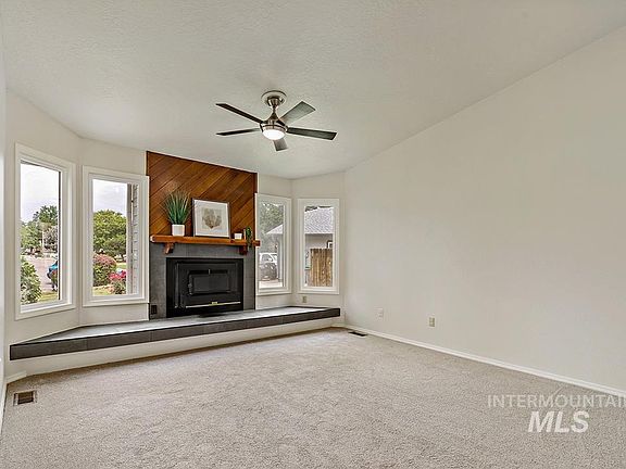 A beautifully updated and move-in ready single-level on a prime lot backing to a quiet neighborhood park! A long front driveway sets the residence back from the street, while this property receives additional privacy with no rear neighbor, backing up to Hewett Park. The charming character is enhanced by an impressive list of recent updates. Improvements include: all new interior paint, light fixtures, flooring, dishwasher, range, vent hood, countertops in kitchen, and updates to the fireplace tile and utilities. Vaulted ceilings expand the feel of the living room, where a gorgeous fireplace with sleek large format tile anchors the space, flanked by four sets of nearly floor-to-ceiling windows. Apart from the updates, the kitchen includes a built-in desk, walk-in pantry, and ample breakfast bar seating in addition to a charming dining area with direct patio access for seamless indoor/outdoor dining.