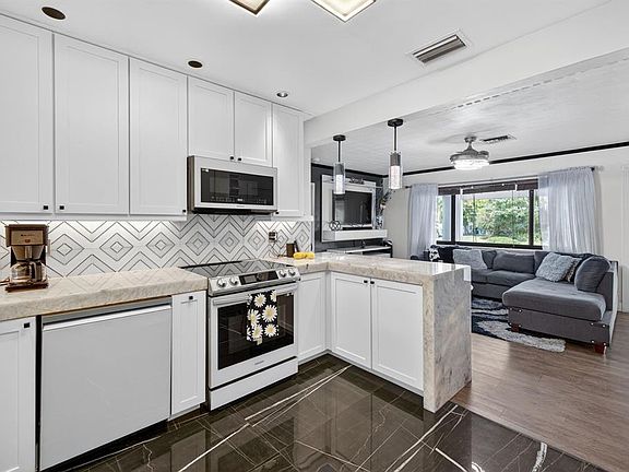 Don’t miss this modern 3-bed, 2-bath home in sought after North Andrews Garden. Offering 1,203 sq Ft living space, features spacious front and back yards, with covered large patio. Circular drive way plus a carport, storage shed, Enjoy a modern kitchen with a backlit Cristallo quartzite waterfall countertop, hands-free Alexa faucet, black granite sink, new smart Samsung appliances, master bath boasts a heated bidet toilet, Bluetooth fan/light, and illuminated sink faucet. The living room has a retractable fan, patio features Alexa-controlled fans. Smart locks, seperate laundry room w/ new washer dryer, new generator, a/c 2020, grill that is ready for your first barbeque. All window treatments, and fixtures are included. Furniture is negotiable. Schedule your tour now—this won’t last!