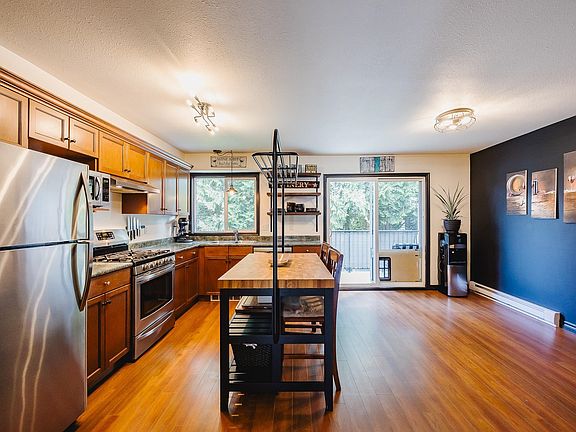 HUGE BACK YARD!!! Welcome to Thornberry Lane. You will fall in love with this 1450+sqft, 3 bdrm+Den, 3 bath, townhome which is situated in a small, well-maintained strata of only 8 units. This unit offers a full size driveway, newer stainless appliance package w/Gas range and Bosch D/W, and a relatively private back deck off the kitchen to take in the mountain views! The top floor offers 3 bdrms and two full size bathrooms, one being the master suite, which features a large closet and an ensuite. The Main level is open and flows from the living room to the kitchen and out to the patio. The lower level has your garage, den, laundry area and entrance to your huge backyard, which features an excellent gazebo area for entertaining on those nice days! All this situated in a central location.