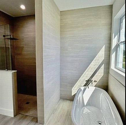 Luxury soaking tubMetal roofHigh ceilingsIncreased living spaceIndoor laundry roomHigh-end finishesOpen floor plan