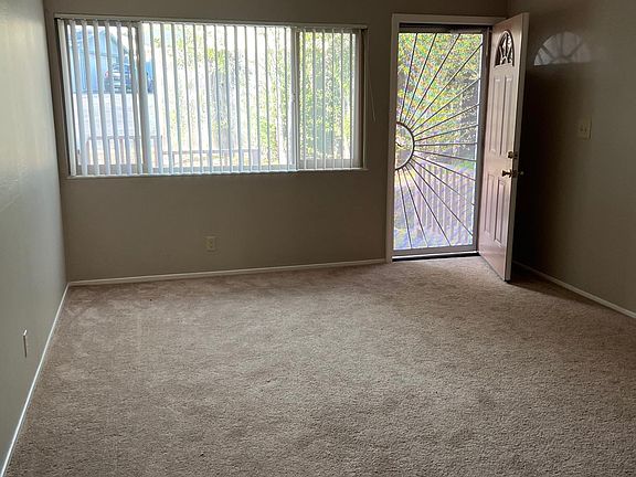 Unit features: Stove, Refrigerator, New Carpets, New Blinds throughout. Washer & Dryer hook up ( electric) in kitchen. Garbage Paid, Spacious yard with a storage shed & New concrete patio. 1 carport, 1 off street parking with storage locker.