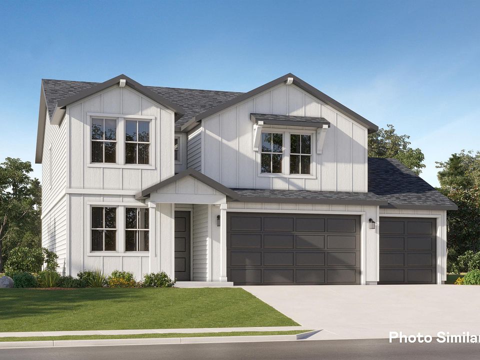 The All-Star Series sparkles with attention to every detail and feature in this luxury series. The raised 9-foot ceilings downstairs feel grand as you enjoy your great room with fireplace and 6’x8’ sliding glass patio door out to your covered patio. The top-of-the-line kitchen has stainless steel appliances and features double ovens, gas cooktop, pantry, pull out recycle and trash bins, and gourmet island prewired for two pendant lights for you to add your personal touch. The kitchen and baths have quartz countertops, and you’ll find Luxury vinyl plank flooring in the main living area, kitchen, baths, and laundry room. Other thoughtful designs include 6” baseboards, garage service door, full gutters, tankless water heater, and so much more. Pera Place in north Meridian features walking trails, tree grove, tot-lot, pond and waterfront homesites!