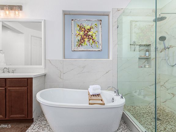 Experience a vibrant lifestyle in this dynamic community, where you can immerse yourself in a range of activities including free park concerts, baseball, volleyball, and access to a community pool, workout facility, splash pad/playground, and scenic walking paths with 10 exercise stations. At home, unwind amidst mature landscaping, basking in the shade of your private gazebo or drifting in the serene pool. Enjoy the charm of tree-lined streets and conveniently located parks just a short stroll away. With Gateway Airport, Superstition Gateway East, and Safeway all within minutes, your shopping and travel needs are effortlessly met. Inside this well-appointed Woodside home, revel in the spacious and beautifully maintained interior, ideal for both peaceful relaxation and entertaining friends