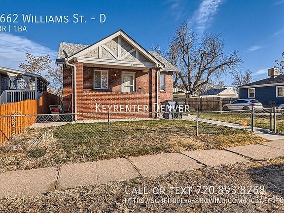 This charming studio unit features spacious bedrooms, a full bathroom, a well-equipped kitchen with a refrigerator and stove, and ample storage space. Enjoy the convenience of a shared washer and dryer, a shared yard, and off-street parking, offering both comfort and practicality. *Window AC unit *W/D on site *Parking: off street *Shared backyard LEASING DETAILS *Approved application require at least 5 business days, regardless of the unit available date. Availability date is subject to change. PET POLICY: *2 Small Dogs Acceptable *$300 initial pet fee *$35 monthly pet fee UTILITY POLICY: *$115 monthly fee covering water/sewer/trash/electric *Resident Package - Tenants choice (more info below) Option 1 - $16 Option 2 - $30 MOVE IN COSTS: *Refundable Security Deposit: Equivalent to one month's rent *Lease Initiation Fee: Equivalent to 15% of one month's rent ($250 minimum) APPLICATION INFORMATION: Application processing time is 1-3 business days. Please review Keyrenter's Application Criteria prior to applying. Approved application require at least 5 business days, regardless of the unit available date. Availability date is subject to change. Other terms, fees, and conditions may apply. All information is deemed reliable but not guaranteed and is subject to change. Rent is subject to change. The prospective tenant has the right to provide to the landlord a portable screening report, as defined in Section 38-12-902(2.5), Colorado Revised Statutes; and If the prospective tenant provides the landlord with a portable tenant screening report, the landlord is prohibited from: Charging the prospective tenant a rental application fee; or Charging the prospective tenant a fee for the landlord to access or use the portal tenant screening report RESIDENT BENEFITS PACKAGE Each Keyrenter resident is automatically enrolled in our Residents Benefits Package. Tenant will select their choice of package: RBP #1 - $16 - Positive credit reporting - Online portal that offers no additional fees when paying rent via ACH (saving you $2.49 per online payment) - Z-Inspector to provide the option of self-completed property inspections - 24/7 after-hours maintenance coverage - Home Buying Assistance for those who want to move onto homeownership, we'll help you get there. - Propertymeld Platform for easy reporting and tracking of maintenance concerns. RBP #2 - $30 - Everything included In Option One - PLUSFilter Delivery Service - Changing filters is as easy as opening the front door. This service helps you save up to $250/year and reduces the hassles of repairs. - Resident Rewards Program - Rent day is now rewards day. You'll get cash, gift cards, and exclusive discounts you can use to save up to$4500/year on everyday expenses. - $1M Identity Protection - 1 in 4 Americans are victims of identity fraud. All adult leaseholders get SIM coverage backed by AIG, monitoring through IBM's Watson, and a dedicated, US-based Identity Restoration Specialist. Your application is not considered "complete" until you have completed the following: Pre-approval process Viewed the property Completed application for all applicants and paid application fees Keyrenter Denver processes complete applications on a first come, first serve basis. Keyrenter Denver 2600 W 29th Ave, B, Denver, CO 80211 2024-BFN-0046981 Fenced Yard (Part) Shared Yard Smoking (Not Allowed)