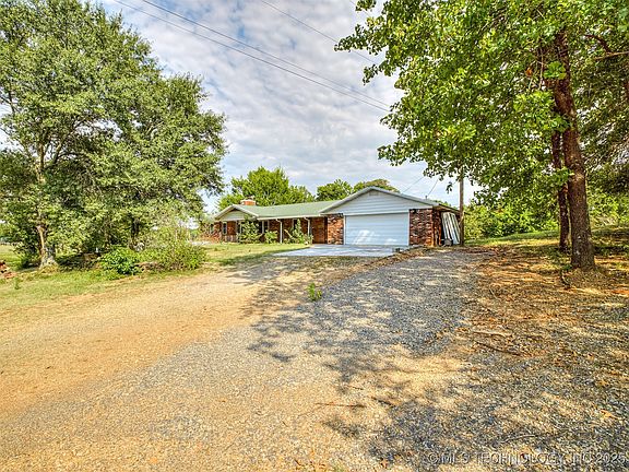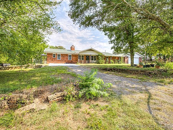 Inviting full-brick ranch-style home featuring 3 bedrooms and 2.5 bathrooms. The spacious living room includes a cozy fireplace, with tile and vinyl flooring throughout. Situated on 5 acres in Sequoyah County (Unplatted) off Highway 64, this property is ideal for farm and ranch use. It includes a barn, shed, storage building, and a 2-car attached garage. A great opportunity for those seeking space, functionality, and country living.