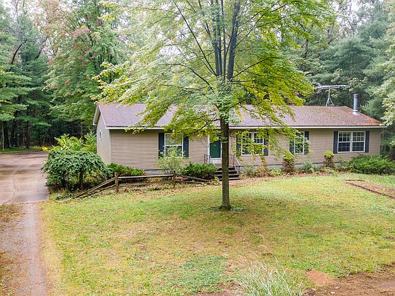 Wooded Wonderland! This 1848 sqft 3 bedroom, 2.5 bath home is nestled on an 8 acre parcel with a huge 1700sqft insulated steel building with concrete floors. The home boasts an open floor plan with large island kitchen, large living room with real wood fireplace, primary bedroom suite with soaking tub, shower, dual sinks and walk in closet. Outside you'll find a large deck overlooking the beautifully wooded back yard. Plenty of room for outdoor activities. Then there is the barn with 12+ ceilings, 3 overhead doors offering room for your RV, trailers, boats, ATVs and workshop. Lots of opportunities here! Close to Croton and Hardy Dam backwaters, local lakes as well as the state and federal lands & a short drive to the Muskegon River. Come check this place out today and make it yours! Any offers will be presented after Monday October 3rd after 6:00pm.