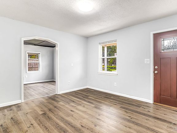 This updated 3-bedroom, 1.5-bath home offers 1,300 sq ft of charm and modern appeal, thoughtfully refreshed inside and out. Step into the bright main living area and you’ll be greeted by attractive, durable luxury vinyl plank flooring, a handsome ceiling with architectural detail, a sleek modern ceiling fan, and a sliding barn door that adds a touch of character. The bright kitchen has been reimagined with new lower cabinets, butcher block bar cut out connecting you to the action, fresh countertops, new sink and faucet, and a chic color palette that brings warmth and personality. A cheerful mudroom with extra cabinet storage makes daily living both practical and fun. Both bathrooms have been refreshed with a clean, contemporary feel, while the bedrooms feature brand new carpet for comfort. Outside, the large fenced backyard with mature shade trees and a patio invites you to relax or entertain. Recent updates add peace of mind, including a roof just 4 years old, indoor AC system 3 years old, new siding, and refinished tub. With so many thoughtful upgrades, this home blends charm and convenience in one inviting package.