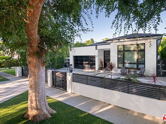 This stunning modern masterpiece in Sherman Oaks presents the perfect fusion of style and functionality. Completely reimagined in 2018, the home features soaring ceilings and a generous single-level open floor plan that flows seamlessly between living spaces, creating an ambiance of elegance and ease. The large kitchen complete with a pantry, spacious island, and abundant storage is a culinary enthusiast's dream, with meals easily enjoyed in the expansive dining area, ideal for entertaining family and friends. The impressive primary suite is a true sanctuary, showcasing a custom-built closet and a spa-like bathroom with a soaking tub and oversized shower. Each spacious secondary bedroom includes its own en-suite bathroom, offering both privacy and convenience. Outside, the cozy backyard, nestled among mature hedges, provides a tranquil setting of seclusion and charm. Additional features include a security system, motorized gate, and built-in speakers throughout. Perfectly positioned on a serene tree-lined street just north of Ventura Boulevard, this home offers a peaceful retreat while keeping you close to shops, dining, and all the best of Sherman Oaks living. Home may be sold furnished or partially furnished.