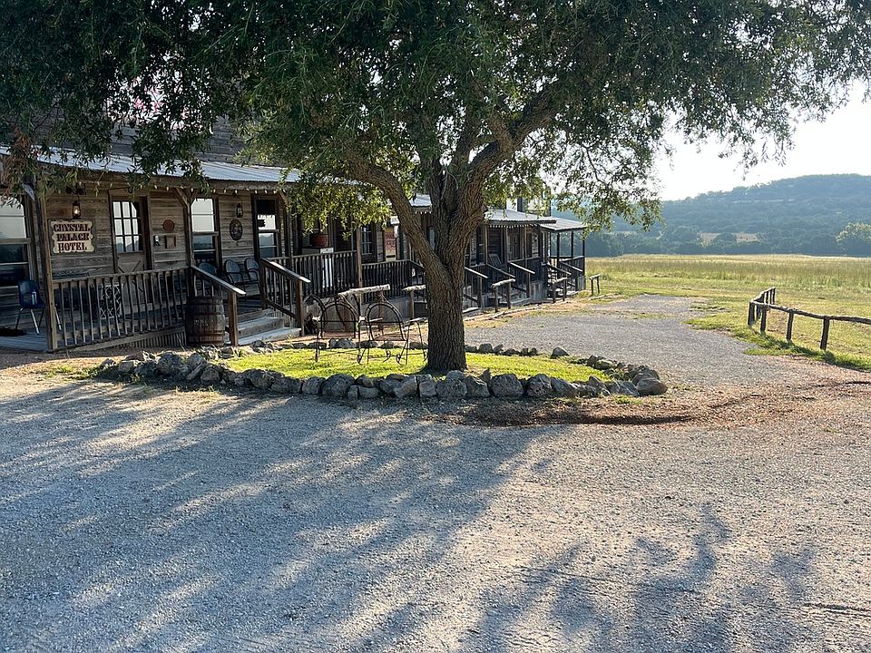 Welcome to The Prescott Ranch. Nestled at the heart of the Texas Hill Country in Blanco, TX this one of a kind property is straight out of the old west! The Prescott Ranch is a multi-use property that has a multitude of possibilities ranging from a retreat, corporate events, short term vacation rental, wedding venue, or a private hunting oasis. The Ranch is a turn key paradise waiting to serve its new role either as income producing or recreational. The Prescott Ranch sprawls over 121 acres of prime Texas land. The ranch has a variety of landscapes to offer. From high altitude build sites, to open fields and two year round ponds, there isn't much this property lacks when it comes to views. The structures on the property are arranged in the fashion of an old western cowboy town. Each individual faux business is a different bedroom with its own full bath, with the first room having a living area, dining space, and full kitchen. This one structure is fully air conditioned and can accommodate groups of up to 20 people! the jailhouse is also equipped with two bedrooms that have bathrooms attached. The original home from the early 1900s is still in tact and is currently being used as yet another bedroom with bunkbeds. Stepping out of each bedroom leads you into the main open area where you are greeted with the outdoor saloon and dance floor! further down the path you will find the meat smoking area with walk in cooler and outdoor kitchen to really enjoy those cool Texas afternoons we have coming in. Scattered throughout the ranch are a handful of hunting blinds and feeders, there have been several whitetail deer taken in the last few years and Axis, Fallow, and even Elk have been spotted roaming the property recently, giving the Prescott ranch the gift of year round hunting! Mineral rights are negotiable for this property, all furniture and most decorative items will convey but tractors and equipment do not. Currently under ag exemption. Thank y'all for the interest in this magnificent property and please come see what the majestic Texas hill country is all about!