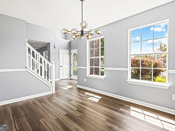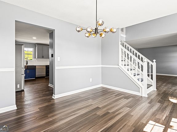 Welcome to 4664 Seagull Cove, a beautifully renovated two-story, 4 bedroom, 2.5 bathroom home offering over 2,100 sq. ft. of modern living space in the desirable Hairston Forest subdivision located in Decatur. Listed at $389,900, this home has been thoughtfully updated with designer finishes, smart home features, and stylish upgrades throughout. Enter the foyer, where a dramatic contemporary chandelier with floating LED rings makes a striking first impression. The dining room is anchored by a bold modern chandelier with smoked glass globe shades, creating the perfect atmosphere for entertaining. The renovated kitchen is a showpiece, featuring a Samsung French door Smart refrigerator, Samsung stainless steel gas range with griddle, a stainless steel vent hood, and a farmhouse apron-front sink with a black-and-gold commercial pull-down faucet. Custom two-tone cabinetry (navy lowers with brass hardware and soft gray uppers) is paired with quartz countertops and a subway tile backsplash, while smoked glass pendant lights add the finishing touch. The family room centers around a classic white fireplace with updated surround and hearth, complemented by modern semi-flush ceiling lights that bring warmth and style. Upstairs, the primary suite is a true retreat, featuring a sleek three-blade ceiling fan with remote control, a spa-like bath with dual vessel sinks, black-and-gold waterfall faucets, a deep soaking tub, and a luxurious walk-in shower with marble-style tile, rainfall showerhead, and penny tile flooring. The suite is finished with a lighted LED vanity mirror for a modern touch. Additional bathrooms feature designer vanities with quartz tops, navy cabinetry, and waterfall faucets, continuing the elegant design theme throughout. Smart home features include an Ecobee smart thermostat and a Vivint home security system, giving you energy efficiency, comfort, and peace of mind. Outside, the home sits on a quiet cul-de-sac street, close to shopping, schools, and major highways for easy commuting. With its modern finishes, smart upgrades, and spacious layout, this renovated home is ready for its new owner. Offered at $389,900. Don't miss your chance to make this beautifully updated home yours! This property qualifies for the Chase Homebuyer Grant which provides $5,000 for buyers closing on this property as a primary residence with Chase Home Mortgage using an FHA, VA or a Conventional Loan. If the buyer closes with a Chase VA Loan the buyer can receive an additional 2,000.00. The grant is first applied to lower the interest rate, then applied to Chase fees or other fees; remaining funds can be applied toward the down payment on applicable loans.