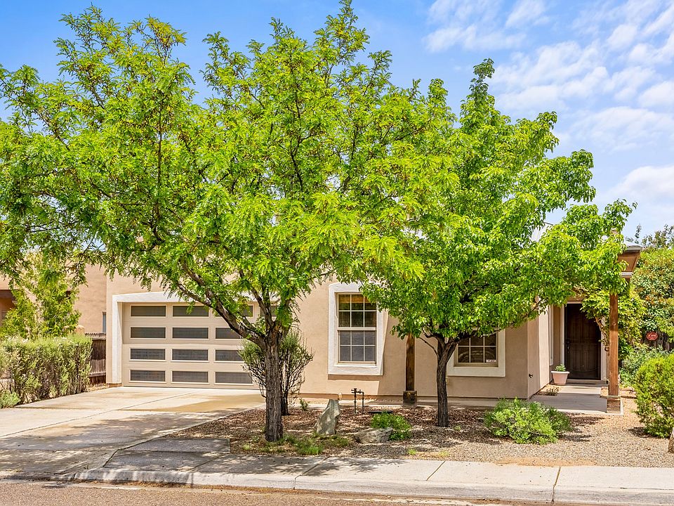 Contenta Ridge charmer! This move-in ready, single level, 3BD-2BA home in Tierra Contenta is the sweetest of its kind. Open concept living, dining and kitchen areas make this the perfect space to gather and entertain. The backyard is fully fenced and filled with mature trees, tiered garden beds, and a lovely brick patio perfect for outdoor dining and lounging. Recent improvements include new flooring in the hallways, new carpet in the primary bedroom and a newer garage door (added 2022). Convenient access to Highway 599 for those commuting to Albuquerque or Los Alamos.