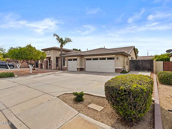 From attractive curb appeal, stunning spacious rooms, perfectly split floorplan, magical light throughout and timeless classy kitchen, to convenient 3 car garage and low maintenance backyard! All in an established Mesa neighborhood close to a beautiful Valencia park, greenbelt, lots of shopping & dining, golf, 2 freeways I-60 and the 202 just minutes away. Be prepared to smile when you open the front door. The exquisite living room filled with natural light welcomes you in. Luxurious master suite on the east side of the home is nicely tucked away from the other bedrooms. No more fighting over closet space! The massive walk-in closet will accommodate all your needs. Separate tub and shower, dual vanities, private toilet room AND a linen closet in master bathroom. Kitchen is a dream! Large island with designated island lighting, stylish upgraded tall cabinets with crown molding and undercabinet lights, breakfast bar, tiled backsplash, brand new gas cooktop, range hood, new RO system, granite countertops, stainless steel appliances, pantry, abundant counter space and storage galore! Look at all the additional cabinets in the breakfast room! Kitchen/family room area is graced with beautiful natural light from 2 skylights and large windows overlooking the backyard. Secondary bedrooms are impressive too. Large rooms with spacious closets and convenient bathrooms nearby. 2 access doors to the garage. Extended covered patio with additional pavers for comfort and convenience. Wonderful sitting area and built in BBQ plumbed for natural gas (grill not included). Small putting green, additional sitting area with 110 outlets, side yard raised garden and storage shed. Mature landscaping including 2 orange trees and lemon tree in the front, pink grapefruit tree, Ficus tree, oleanders and cacti in the back. Whether you are entertaining or just enjoying a quiet evening by the fire, this low maintenance backyard is your own oasis. Welcome Home!
