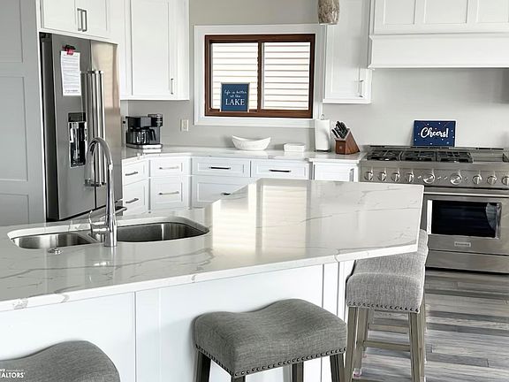 Recently renovated and tastefully furnished lakeshore home with 60' of frontage. This spacious four bedroom, three bath home features expansive views of the lake from many vantage points with an open floor plan. The dream kitchen with quartz countertops, plenty of cupboard space and newer appliances can accommodate many guests around the eating bar and lakeview dining area. You will enjoy entertaining on the outside patio with built-in grilling area, gas fire pit and hot tub! A primary bedroom, bath with soaking tub, laundry and den rounds out the floor plan on the main level. The upper level three bedrooms are generous in size with plenty of closet and storage space. This home is conveniently accessible to Highway 18 off Clark Road. Call your favorite Realtor today to preview this amazing property!