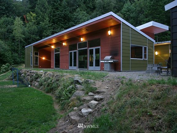 3 BR,3 Bath,1 level NW Contemporary Home nestled on 7+ acres close to Galbraith biking trails and Lake Padden. Professional Designer's own home exudes quality & refined taste in every element from the internal atrium that pours natural light into the open floor plan to the walnut cabinetry in gourmet kitchen w/ granite waterfall on island. Luxurious Master w/ensuite. Gorgeous polished concrete floors, smart wiring, security system,&steam shower. Isokerm masonry fireplace in great room.