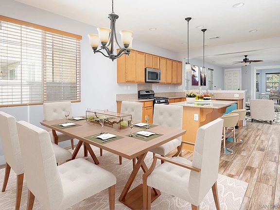 Beautiful move in ready home in the Redhawk community of Temecula. 3 bed 2 bath home, built in 2012 features nine foot ceilings and wood-tiled flooring throughout the open floor plan. Sundrenched eat-in kitchen with stainless steel appliances leads to fully fenced backyard. Separate space off living room for den/office or optional 4th bedroom. Primary bedroom boasts walk-in closet and ensuite bathroom with dual sinks, soaking tub and separate toilet room. Owned solar with low electric bills. Low HOAs. Close to Patricia H. Birdsall Sports Park, Pechanga Resort, and Great Oak High School.