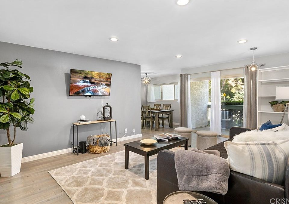 Welcome home to this amazing first floor condo in beautiful Oak Park Calabasas Community. This spacious two bedroom condo has been thoughtfully updated with top of the line, stainless steel Kitchen Aid Professional appliances, glass tile backsplash, granite countertops and handcrafted kitchen cabinets. New top of the line flooring throughout. Dining room and bedrooms have new ceiling fans along with beautiful lighting throughout. The master ensuite has a large walk-in closet and large shower. Newer dual pane windows throughout. Newer AC unit. New front door to be installed. This unit absolutely has it all. There is a community pool, spa, clubhouse and gym. Enjoy the pathways along the creekside or across the bridge to the lake. There is onsite security and property management. Home to one of the largest Oak trees in Calabasas. The setting of this community is reminiscent of Central Park. A short distance to markets (Ralphs and Trader Joes), shopping, restaurants and more. LVUSD award winning schools!!