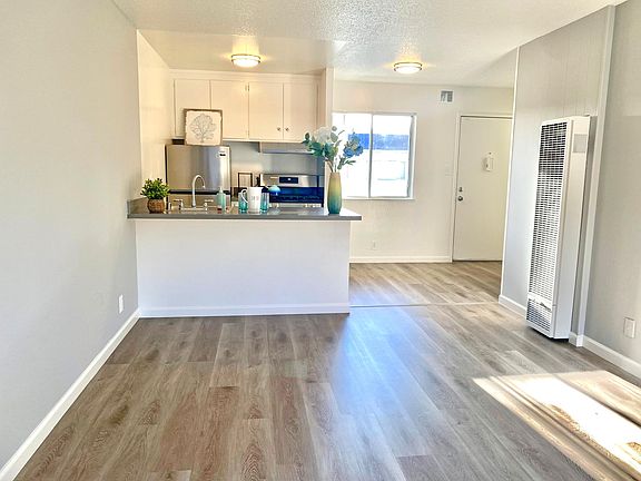 Come view this large renovated one-bedroom unit in a great El Sobrante location! The kitchen features quartz stone countertops, new stainless appliances, a dishwasher and a breakfast bar/peninsula. The kitchen opens up to the living area. This apartment is on the 2nd floor and features new luxury vinyl flooring throughout except for soft carpet in the bedroom. There is a large closet in the bedroom. There is good natural light in this unit, with large windows in the bedroom, living room and the large entry area. An entry area with extra closet space greets you as you walk through the front door. One parking spot is included with your rent. There are phone app or coin-operated laundry rooms onsite. Trash and water/sewer service is included. A cat will be considered. No smoking. Owner pays trash and water/sewer. Tenant pays other utilities including PG&E.