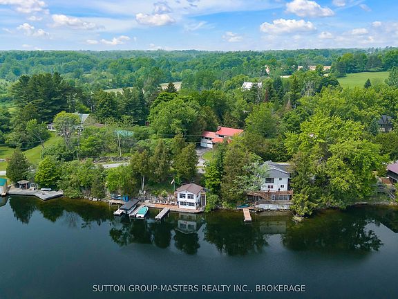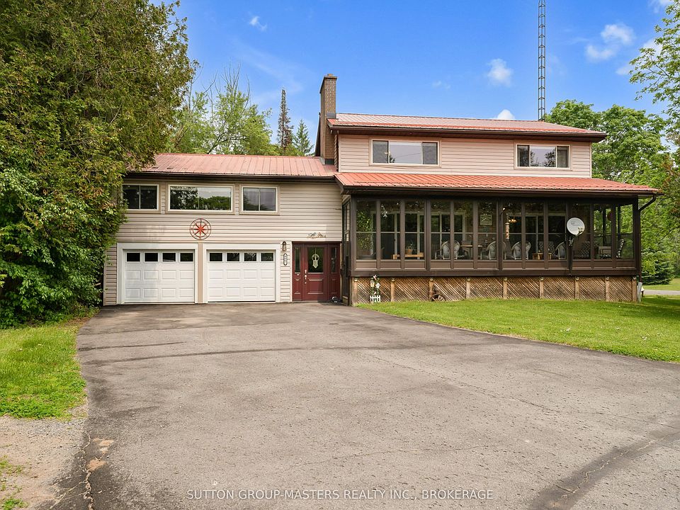 Nestled on a combined 1.08-acre lot at 4667 Clearwater Road, this property offers a prime lakeside lifestyle just minutes from Sydenham. The unique setup includes an interior lot and a waterfront lot across the lane, featuring 121 feet of natural, south-facing shoreline with deep water (8+ ft) perfect for swimming and large boats.The main home provides 2,279 sq. ft. of comfortable living space with 3 bedrooms and1.5 bathrooms. Highlights include a combined living/dining room with a fireplace, a bright 3-season porch with stunning lake views, a rear deck, and a bonus family room above the attached double garage. Outdoor amenities are exceptional, with dockage for 5 boats, a power boat lift, and powered dock lifts. A key feature of the property is a heated, insulated bunkie located near the waters edge; prospective buyers are advised to conduct their own due diligence regarding any structures near the shoreline, including verification of permits, surveys, and land ownership with the Township of South Frontenac and MNR. Additional assets include a brand new, insulated, and heated 24 x 30 detached garage/workshop. Recent updates feature a new steel roof (2023), forced air propane furnace, central A/C, and an optional airtight wood furnace (2022). This is a rare opportunity to own a versatile property, sold as-is, where location meets potential.