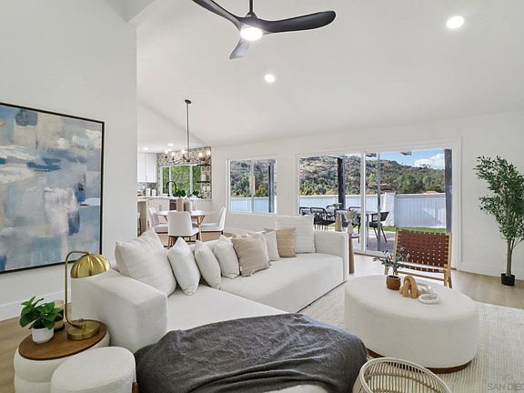 Experience Fallbrook living in this elegantly remodeled single-story retreat, set on 2.45 acres of exceptional privacy with sweeping mountain and canyon views. Thoughtfully updated throughout, this 5-bedroom, 3-bath residence offers a sophisticated blend of modern comfort and timeless design. Expansive living spaces showcase new windows and sliders that frame the surrounding landscape, while the reimagined chef’s kitchen features all-new cabinetry, quartz countertops, and premium appliances. The serene primary suite opens directly to the backyard and includes an upgraded bath with dual vanities and a walk-in shower. All bedrooms are positioned on one level for effortless living, with a versatile fifth bedroom ideal as an office or retreat. Outside, enjoy a fully fenced pool area, covered patio, and uninterrupted vistas across rolling hills. The expansive grounds offer RV parking, room for an ADU, and space for horses or future improvements. A private gated driveway elevates the sense of exclusivity while keeping the home conveniently close to town. With no HOA, this property delivers a rare blend of luxury, privacy, and contemporary elegance in one of Fallbrook’s most desirable settings.